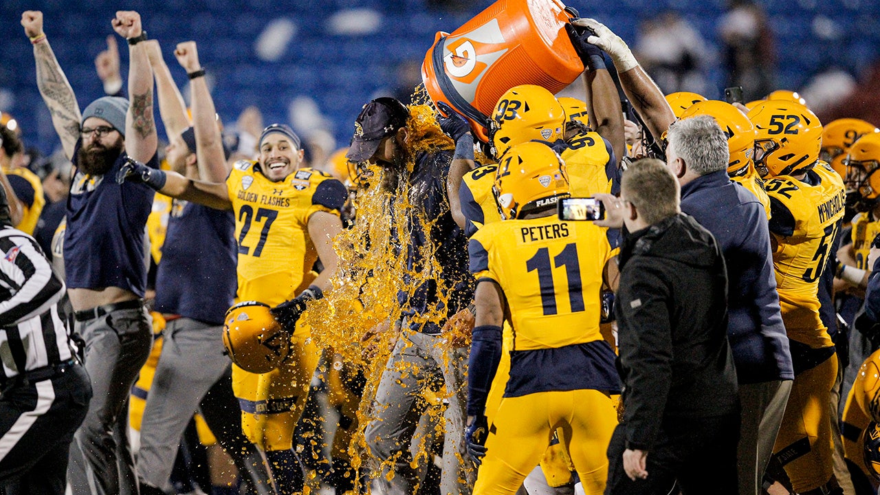 “I’m just so happy for the university,” said Crum, who also was Kent State’s leading rusher during the season. “We weren’t supposed to be here, but here we are.”