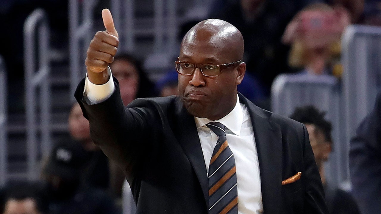 FILE - Golden State Warriors assistant coach Mike Brown gestures during an NBA basketball game against the Portland Trail Blazers in San Francisco, Nov. 4, 2019. (AP Photo/Jeff Chiu, File)