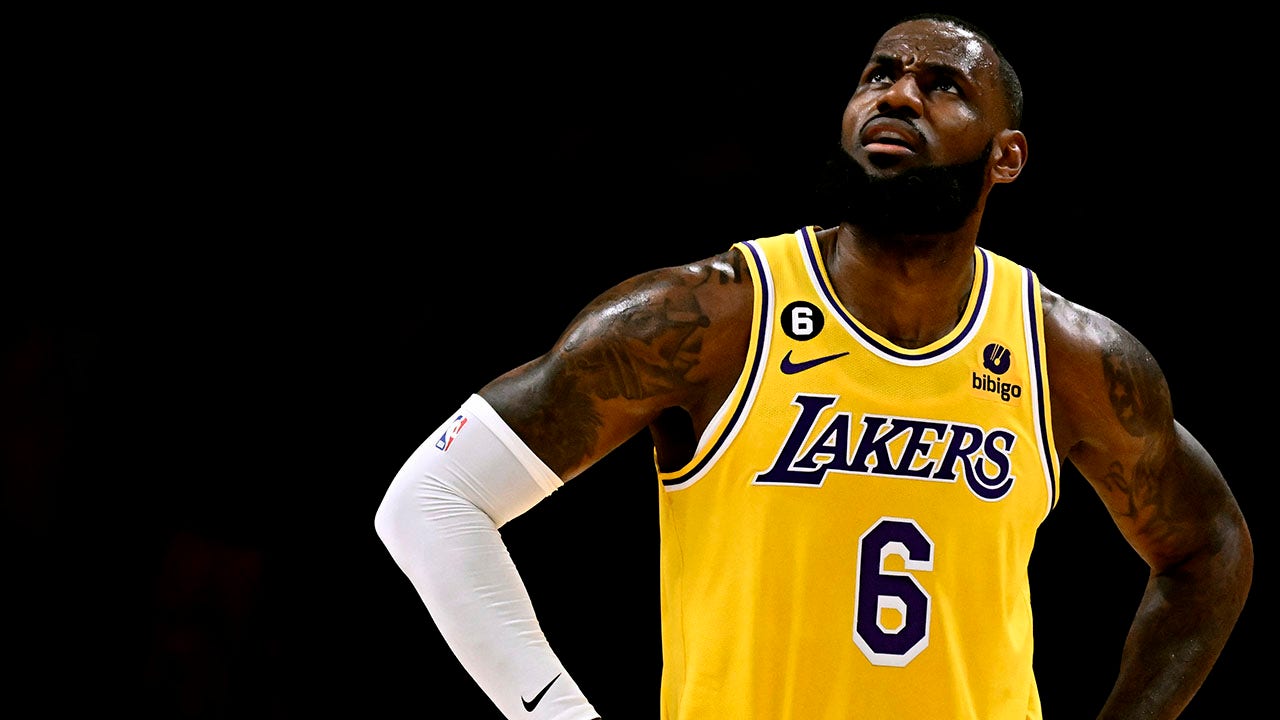 LeBron James, #6 of the Los Angeles Lakers, looks toward the video board against the LA Clippers in the first half of an NBA basketball game at the Crypto.com Arena in Los Angeles on Thursday, Oct. 20, 2022. (Keith Birmingham/MediaNews Group/Pasadena Star-News via Getty Images)