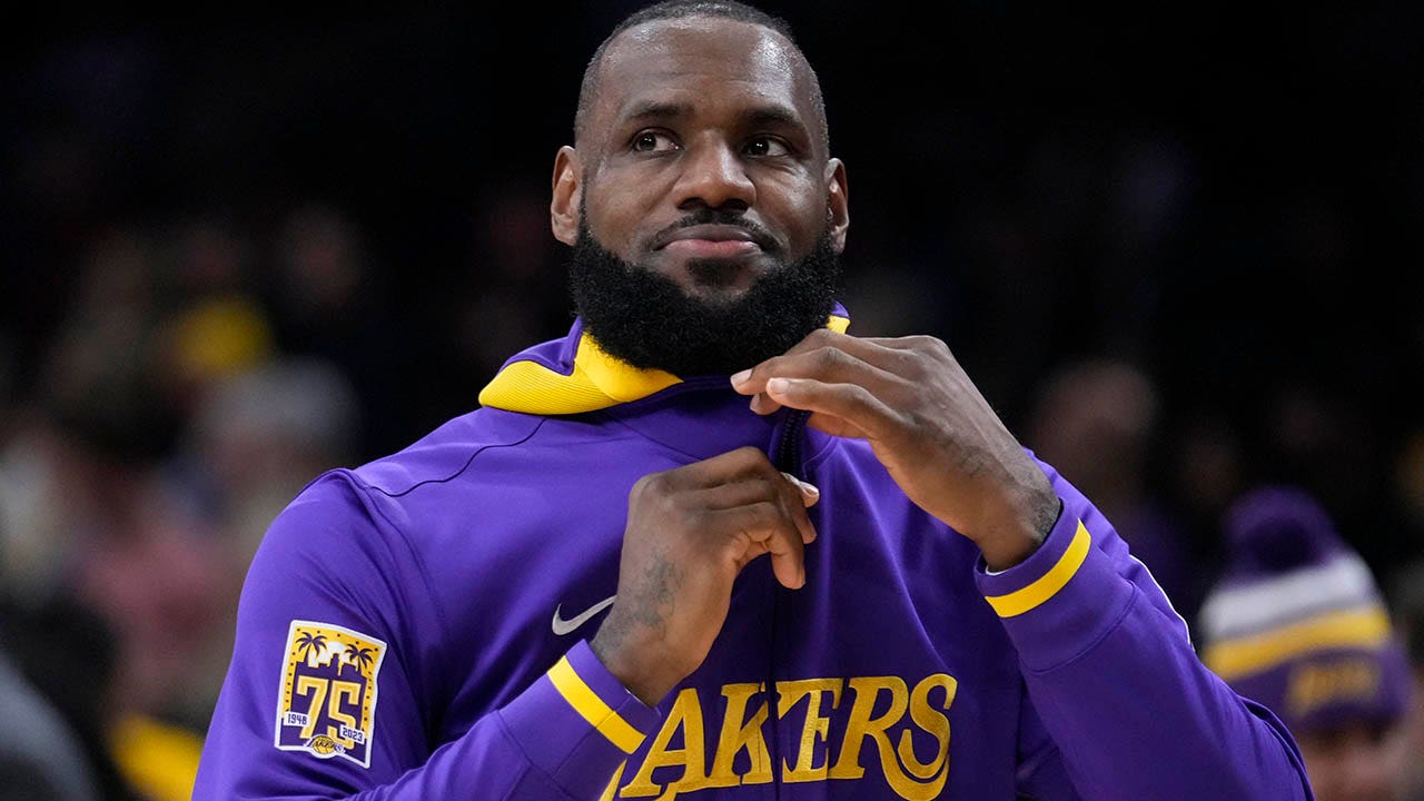 Los Angeles Lakers' LeBron James warms up before an NBA basketball game against the Chicago Bulls, Sunday, March 26, 2023, in Los Angeles. (AP Photo/Marcio Jose Sanchez)