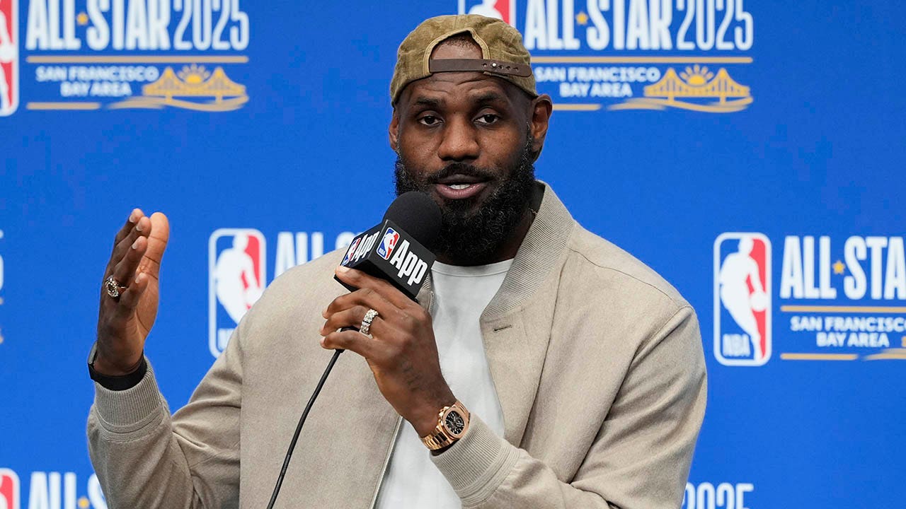 Los Angeles Lakers forward LeBron James speaks during a press conference before the NBA basketball All-Star game on Sunday, Feb. 16, 2025 in San Francisco. (AP Photo/Godofredo A. Vásquez)