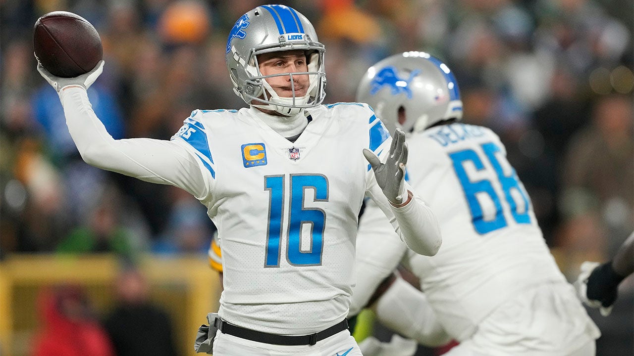 Jared Goff (16) of the Detroit Lions throws a pass against the Green Bay Packers at Lambeau Field Jan. 8, 2023, in Green Bay, Wis. (Patrick McDermott/Getty Images)