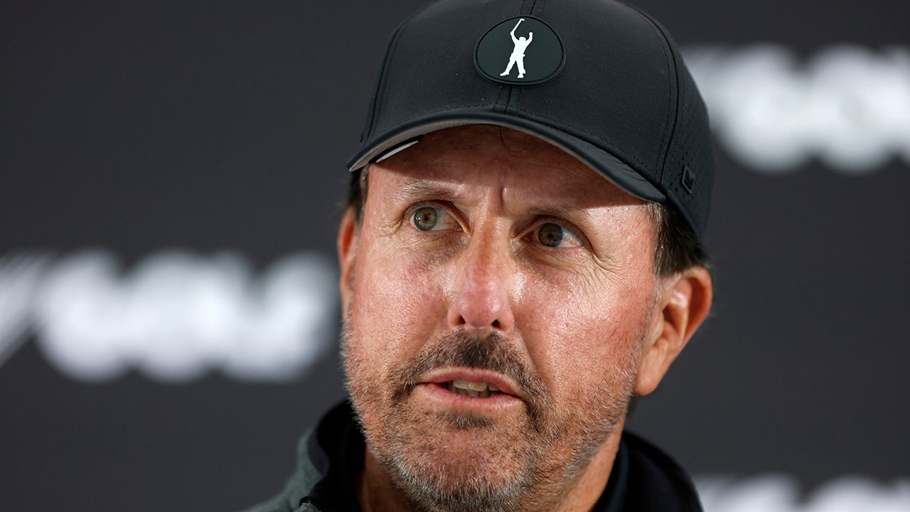 Phil Mickelson attends a press conference at the Centurion Club, Hertfordshire, England, ahead of the LIV Golf Invitational Series, Wednesday June 8, 2022. (Steven Paston/PA via AP)