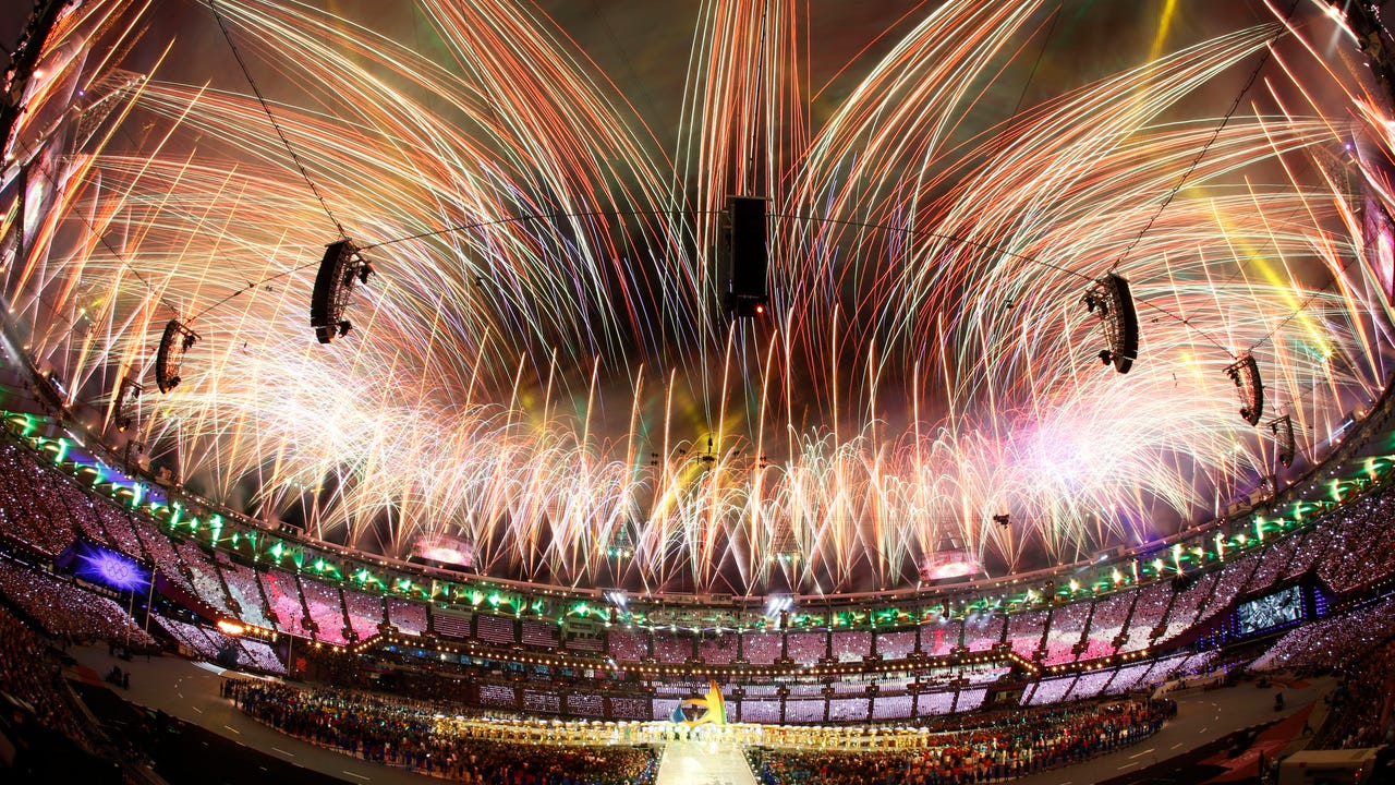 The Spice Girls staged a show-stopping reunion, and Monty Python's Eric Idle sauntered through "Always Look on the Bright Side of Life" — accompanied by Roman centurions, Scottish bagpipers and a human cannonball.