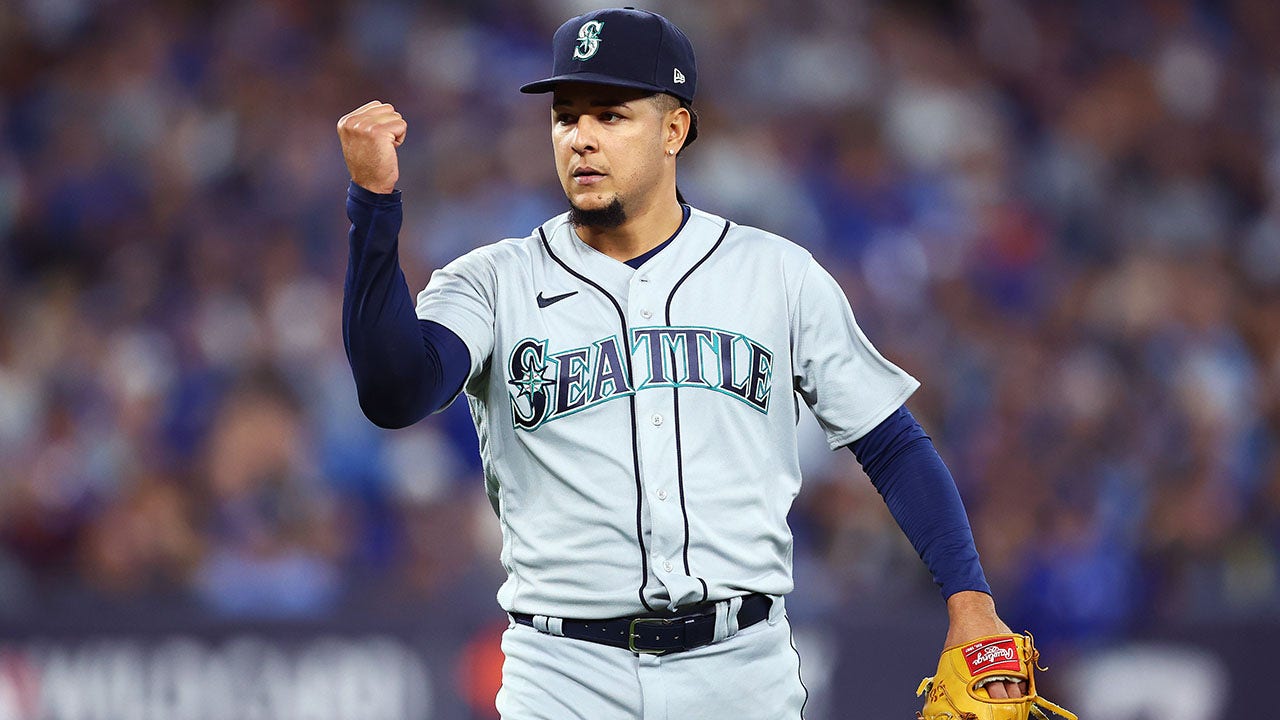 Luis Castillo of the Seattle Mariners reacts at the end of the sixth inning during Game 1 of an AL wild-card series against the Toronto Blue Jays at Rogers Centre Oct. 7, 2022, in Toronto. (Vaughn Ridley/Getty Images)