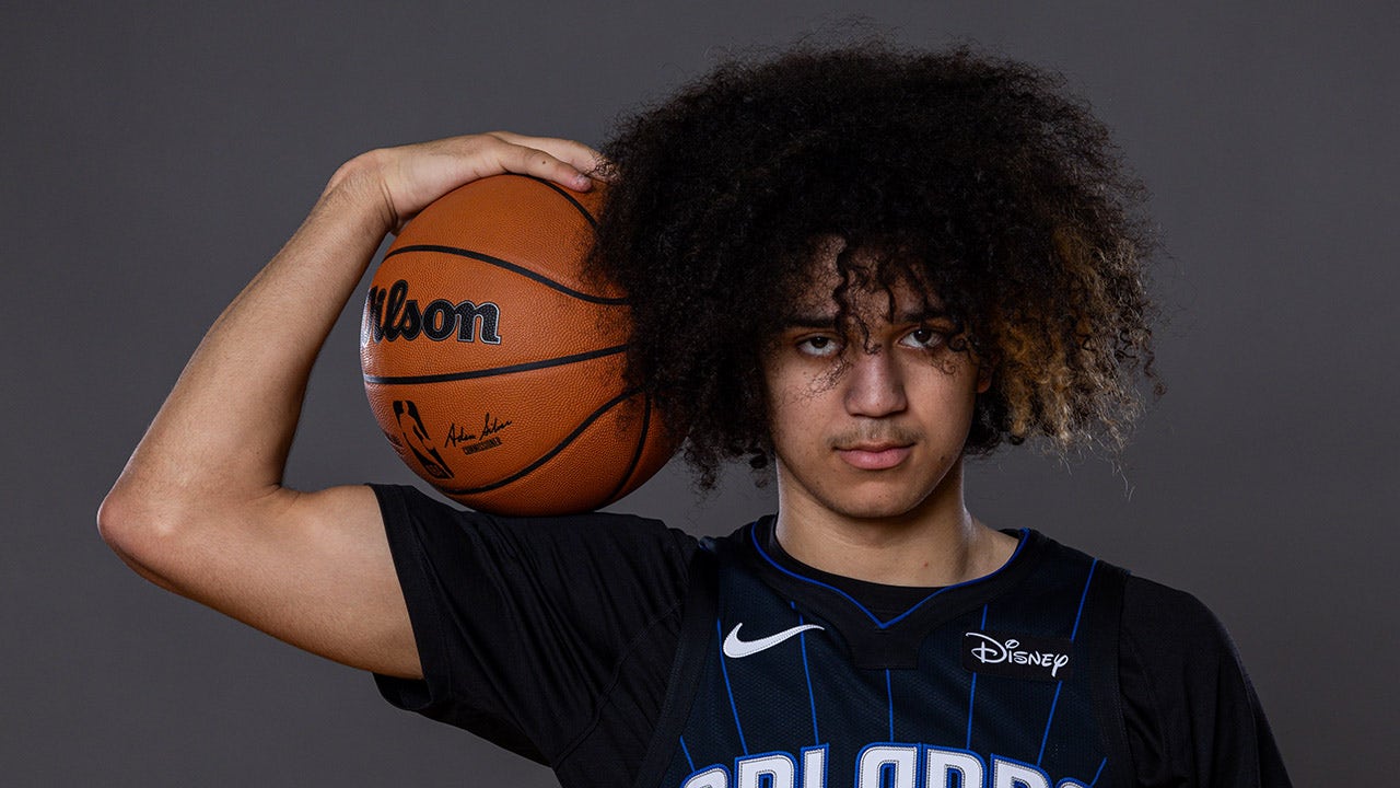Anthony Black of the Orlando Magic poses for a portrait during the 2023 NBA rookie photo shoot at UNLV July 14, 2023, in Las Vegas. (Jamie Squire/Getty Images)