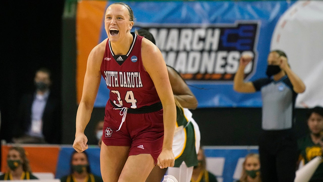 Summit League champ South Dakota was the second No. 10 seed to beat a No. 2 seed on Sunday, after Creighton won 64-62 at Iowa earlier in the day. They were the record eighth double-digit seed to win a game in the women's tournament this year.