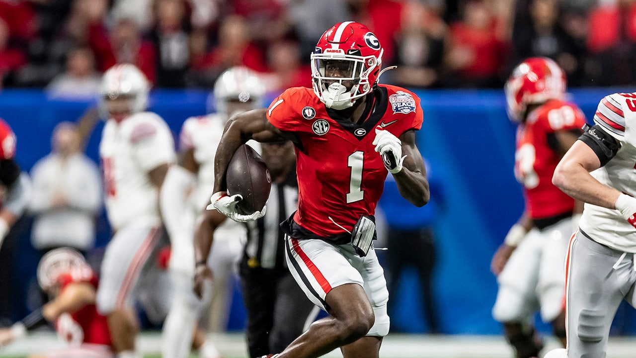 Marcus Rosemy-Jacksaint #1 of the Georgia Bulldogs runs with the ball during a game between Ohio State Buckeyes and Georgia Bulldogs at Mercedes-Benz Stadium on December 31, 2022 in Atlanta, Georgia. (Photo by Steve Limentani/ISI Photos/Getty Images)