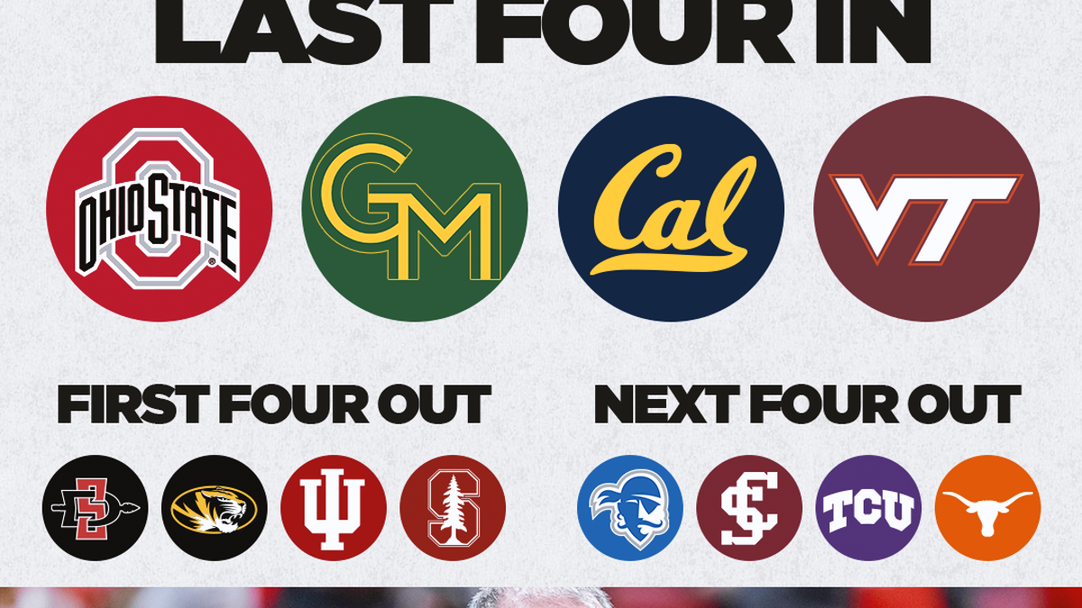 According to DeCourcy's projections, Ohio State, George Mason, Cal and Virginia Tech are the last four teams in the tournament, while San Diego State, Missouri, Indiana and Stanford are the first four out.