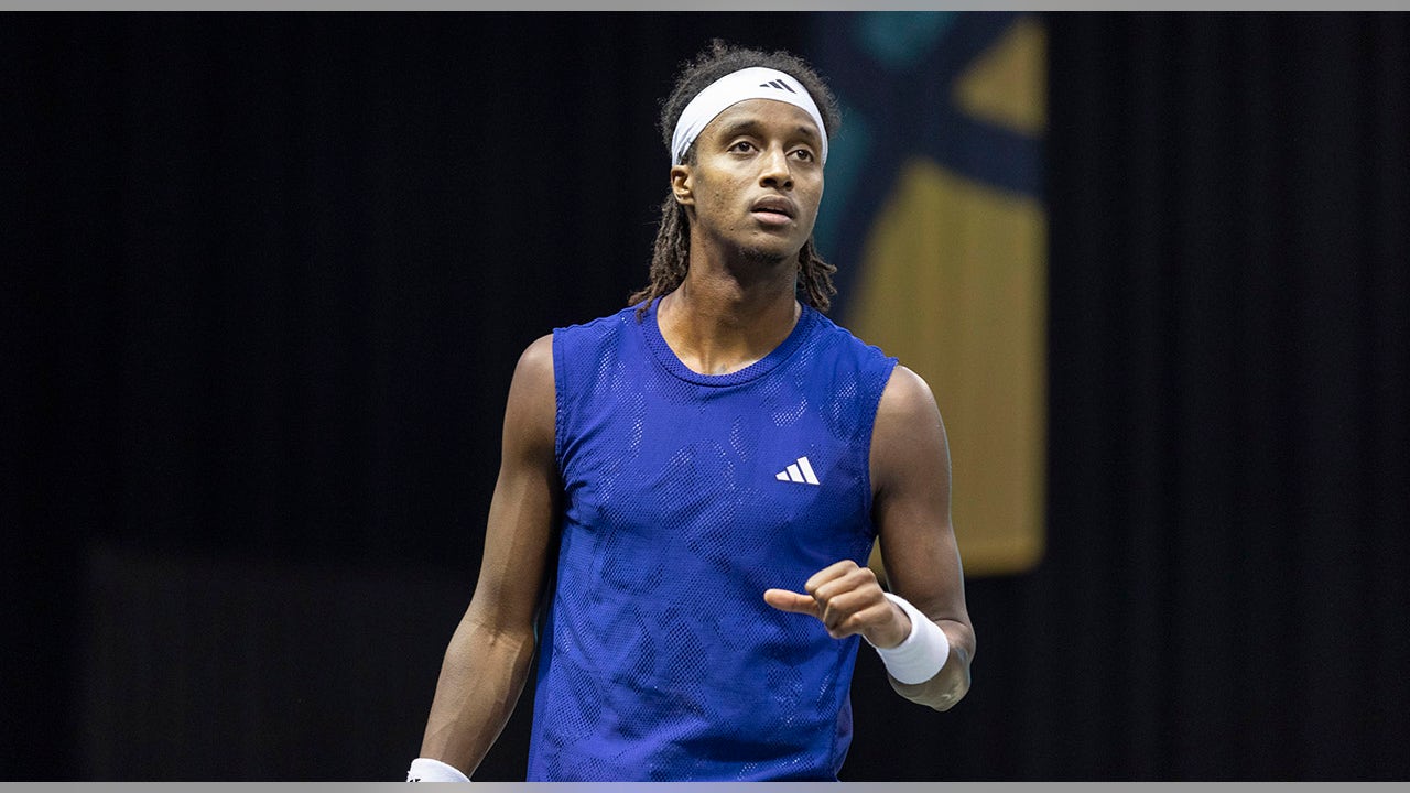 Ymer thought the borderline call was out, but after hearing no call, he awkwardly tried to return the shot, and it went out on Fils’ end.