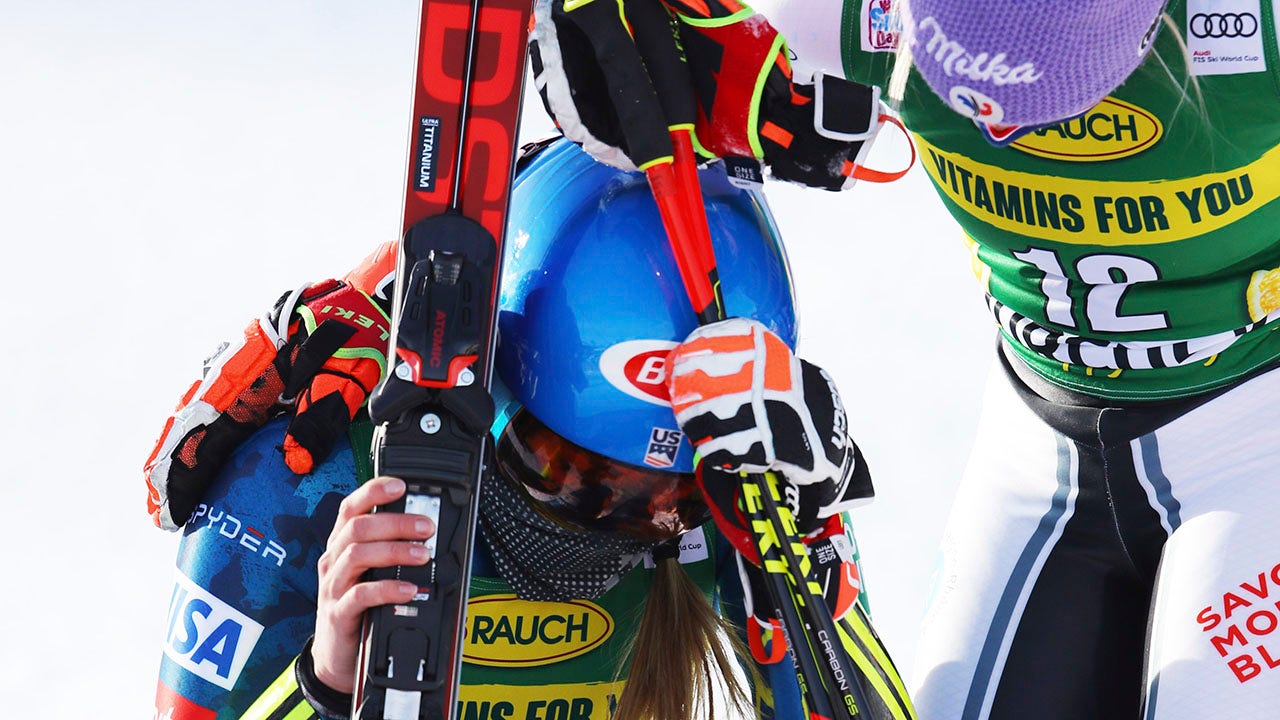 She was greeted in the finish area by Brignone, who won the overall World Cup title last season after Shiffrin stopped racing to be with her family in Colorado.