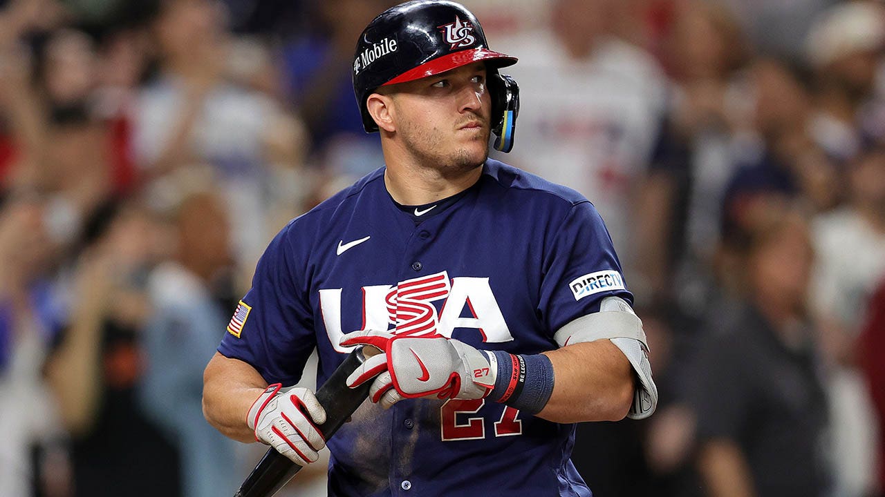Mike Trout, #27 of Team USA, prepares to bat against Shohei Ohtani, #16 of Team Japan, in the ninth inning of the World Baseball Classic Championship at loanDepot park on March 21, 2023 in Miami. (Megan Briggs/Getty Images)