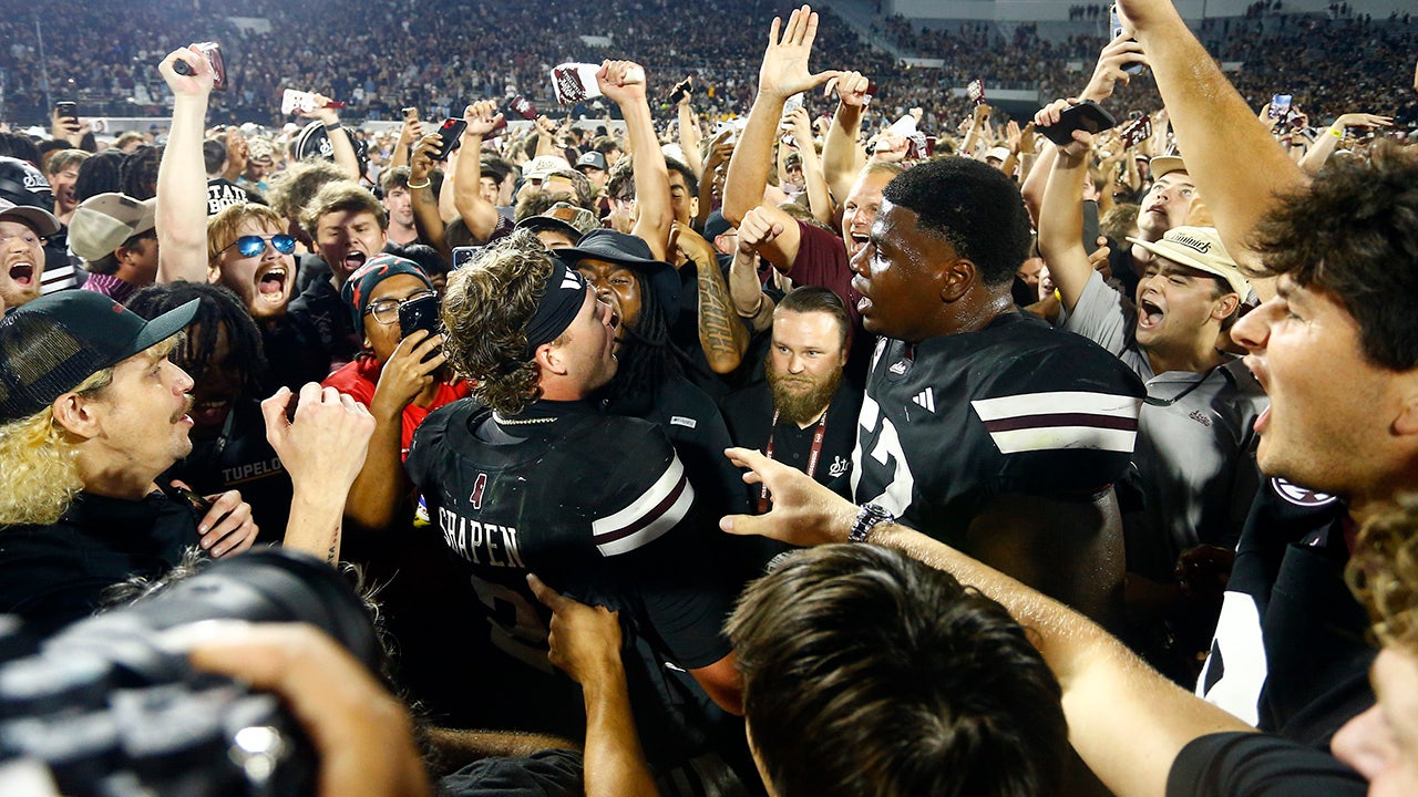 Bulldogs fans in Starkville, Mississippi, stormed the field to celebrate the win.
