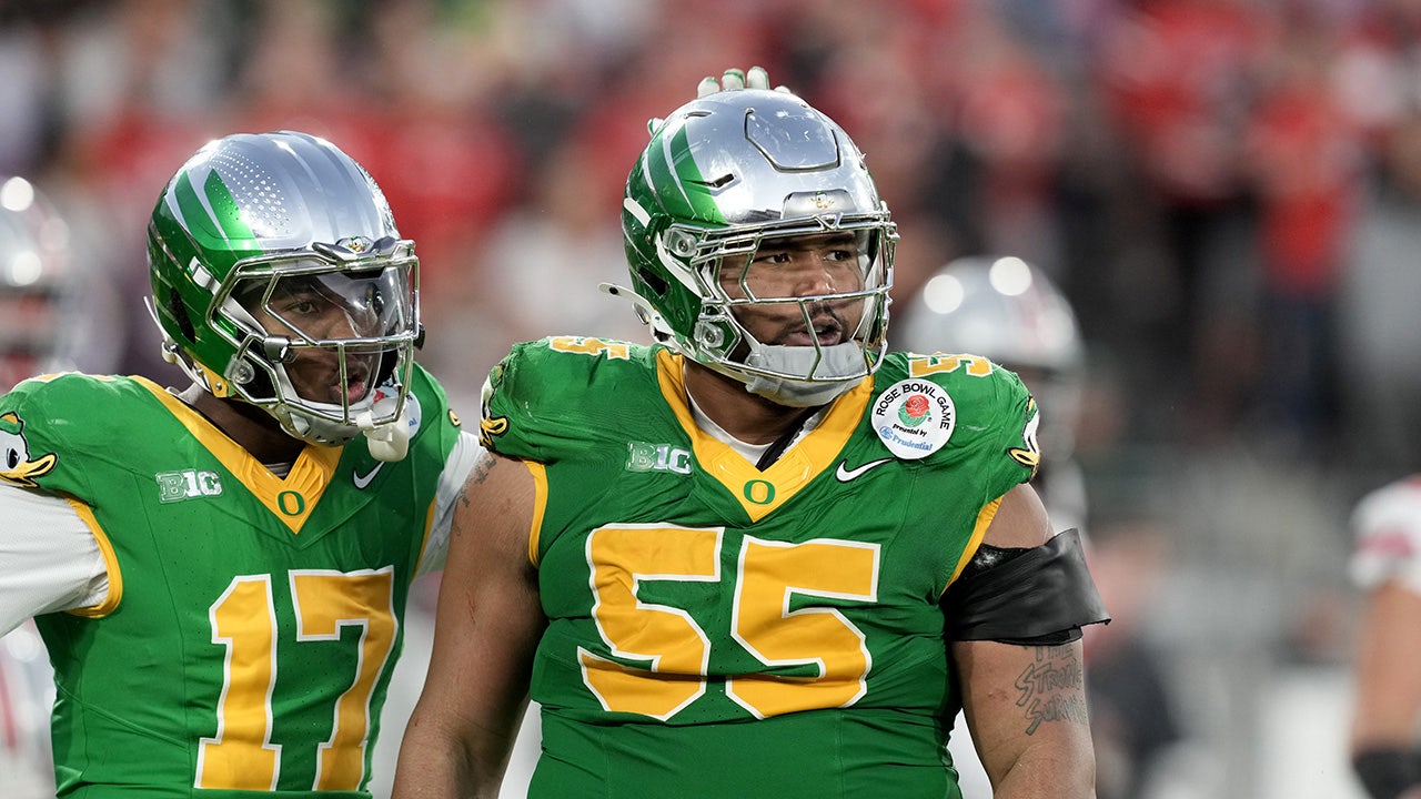 The 6-foot-5, 310-pound Harmon spent three seasons at Michigan State before transferring to Oregon, where he blossomed into a disruptive force. Harmon was a second-team All-American last season while finishing with five sacks and 10½ tackles for loss for the Ducks.
