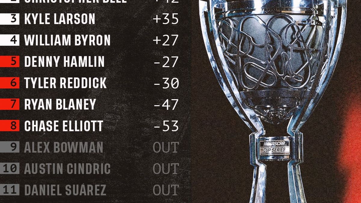 Larson at least has the consolation that he leaves the race 35 points above the cutoff while Hamlin is 27 points behind.