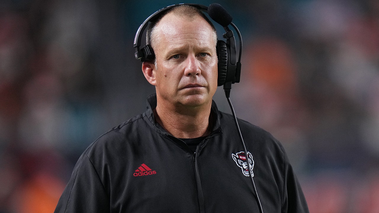 Head coach Dave Doeren of the North Carolina State Wolfpack looks on during the game against the Miami Hurricanes in the first half at Hard Rock Stadium on Oct. 23, 2021, in Miami Gardens, Florida. (Mark Brown/Getty Images)