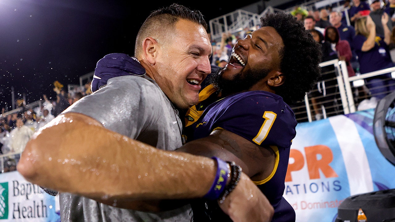 Desjuan Johnson (1) of the Toledo Rockets celebrates after defeating the Liberty Flames in the RoofClaim.com Boca Raton Bowl game at FAU Stadium Dec. 20, 2022, in Boca Raton, Fla. (Megan Briggs/Getty Images)