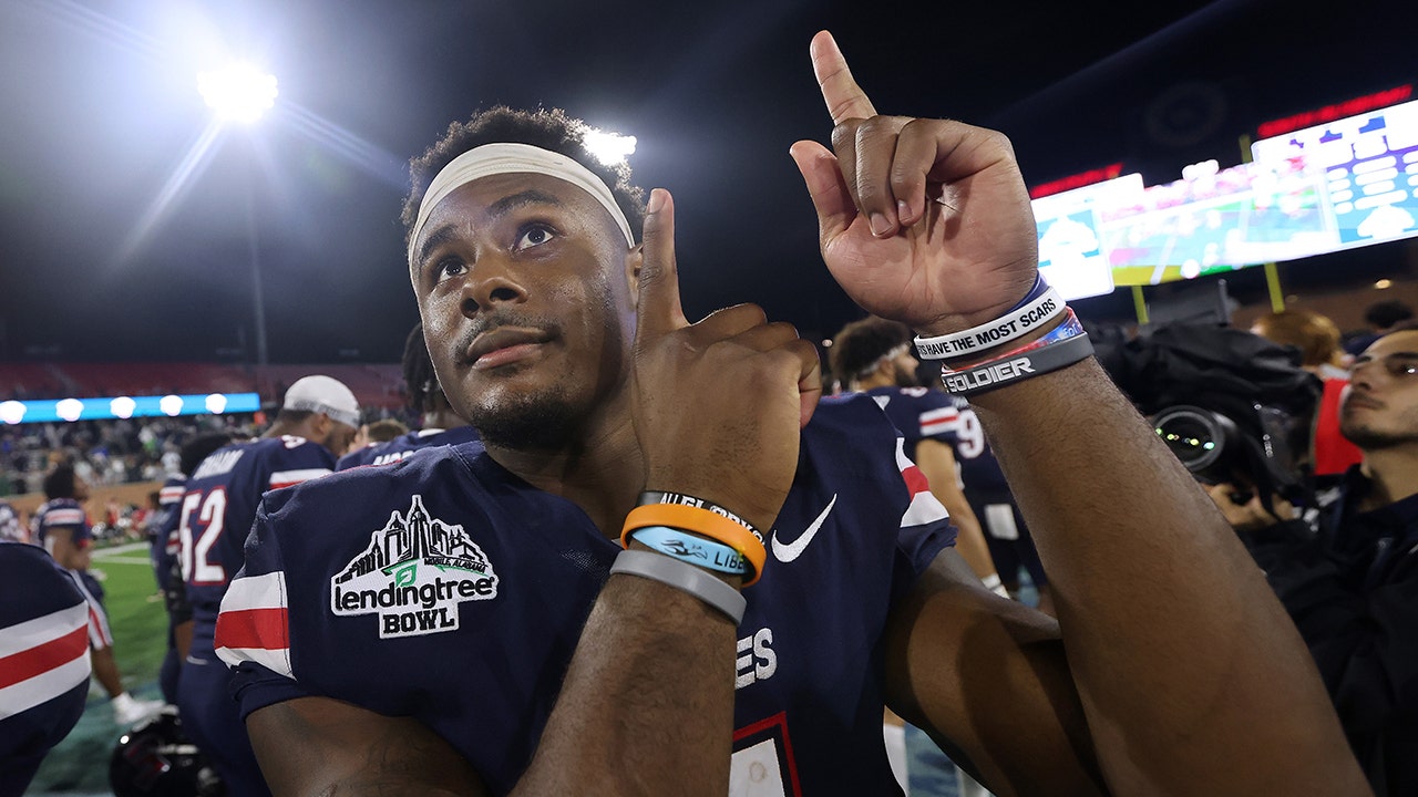 Malik Willis #7 of the Liberty Flames reacts during the LendingTree Bowl at Hancock Whitney Stadium on December 18, 2021 in Mobile, Alabama. (Jonathan Bachman/Getty Images)