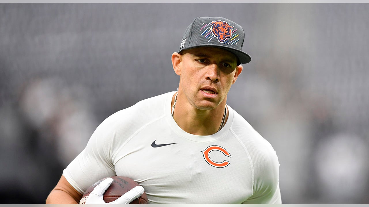 Tight end Jimmy Graham of the Chicago Bears warms up before the Raiders game at Allegiant Stadium on Oct. 10, 2021 in Las Vegas. (Chris Unger/Getty Images)