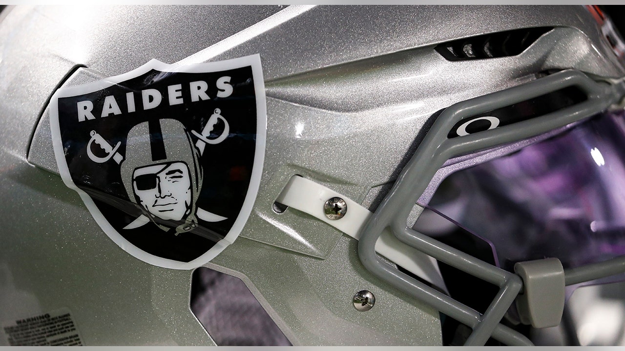 A Las Vegas Raiders helmet during a preseason game against the Miami Dolphins at Hard Rock Stadium Aug. 20, 2022, in Miami Gardens, Fla. (Kevin Sabitus/Getty Images)