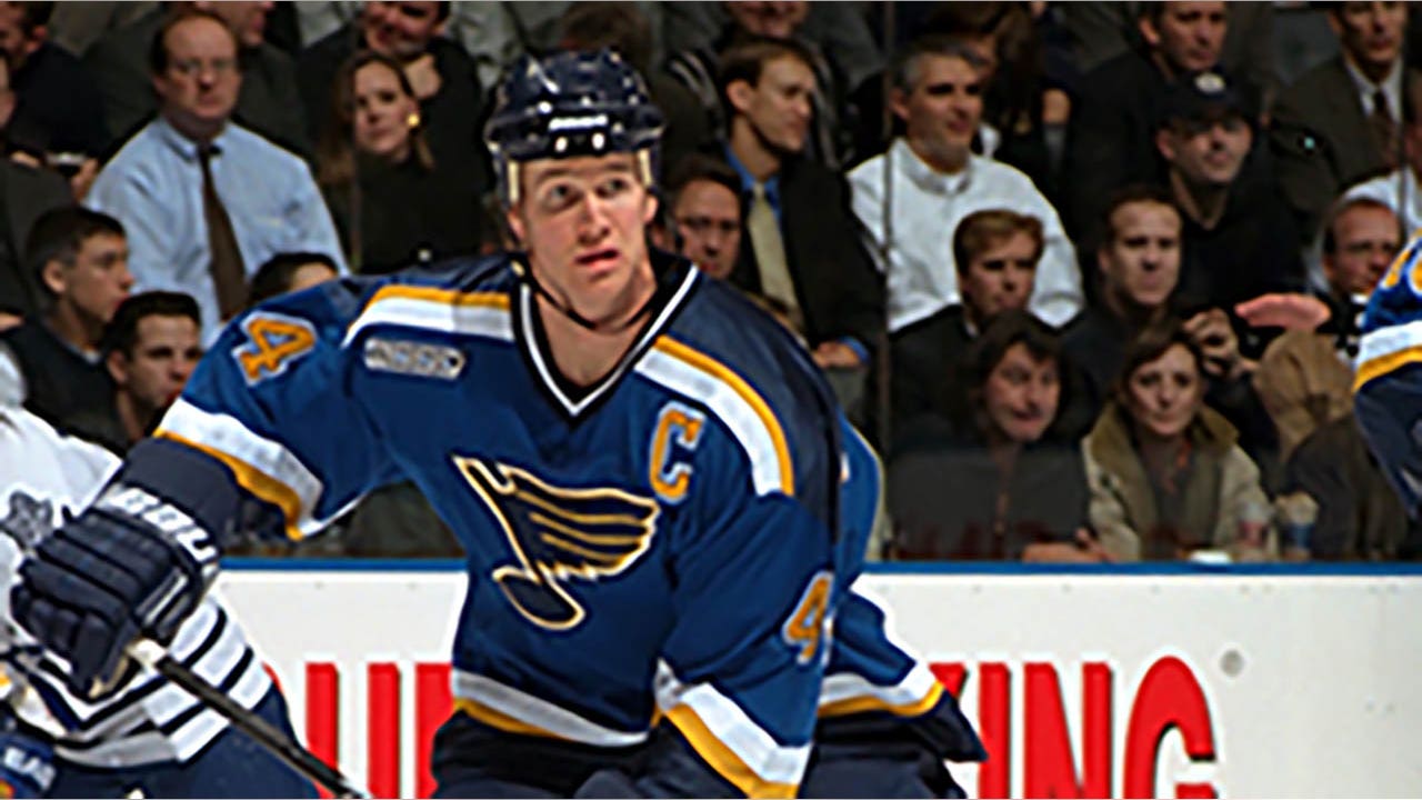 Chris Pronger of the St. Louis Blues during the Maple Leafs game on Nov. 17, 1999, at Air Canada Centre in Toronto, Ontario. (Graig Abel/Getty Images)