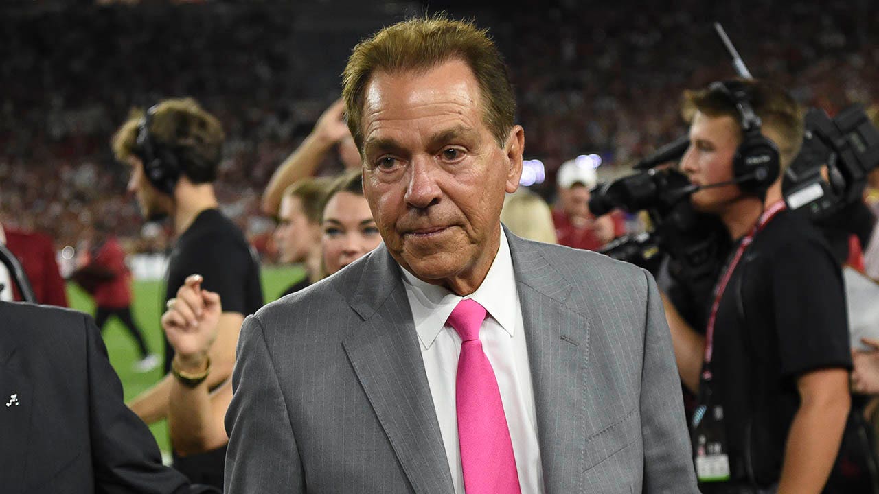 Nick Saban walks off the field after it was renamed in his honor at Bryant-Denny Stadium during halftime of Alabama’s win over South Florida 42-16 in Tuscaloosa, Ala., Sept. 7, 2024. (Gary Cosby Jr./USA Today Network via Imagn Images)