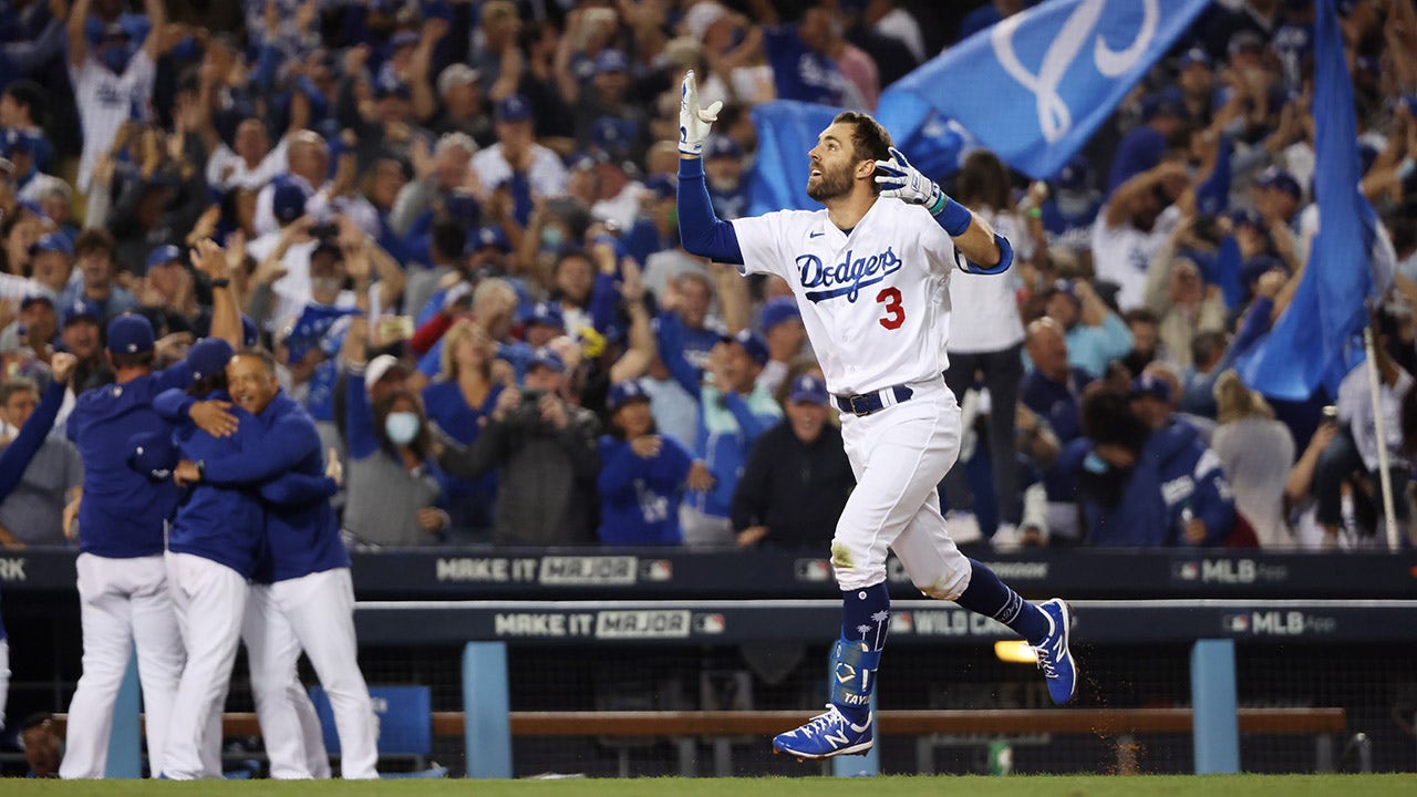In the bottom of the ninth inning, Dodgers outfielder Chris Taylor came up to bat against Cardinals pitcher Alex Reyes with Cody Bellinger on second and hit a two-run home run to send Los Angeles to the National League Division Series.