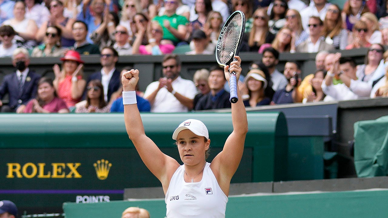 The 25-year-old Barty won the 2019 French Open and is currently ranked No. 1. She is the first woman from Australia to reach the title match at Wimbledon since Evonne Goolagong won the trophy 1980; Barty has been wearing an outfit intended as a tribute to Goolagong this fortnight.