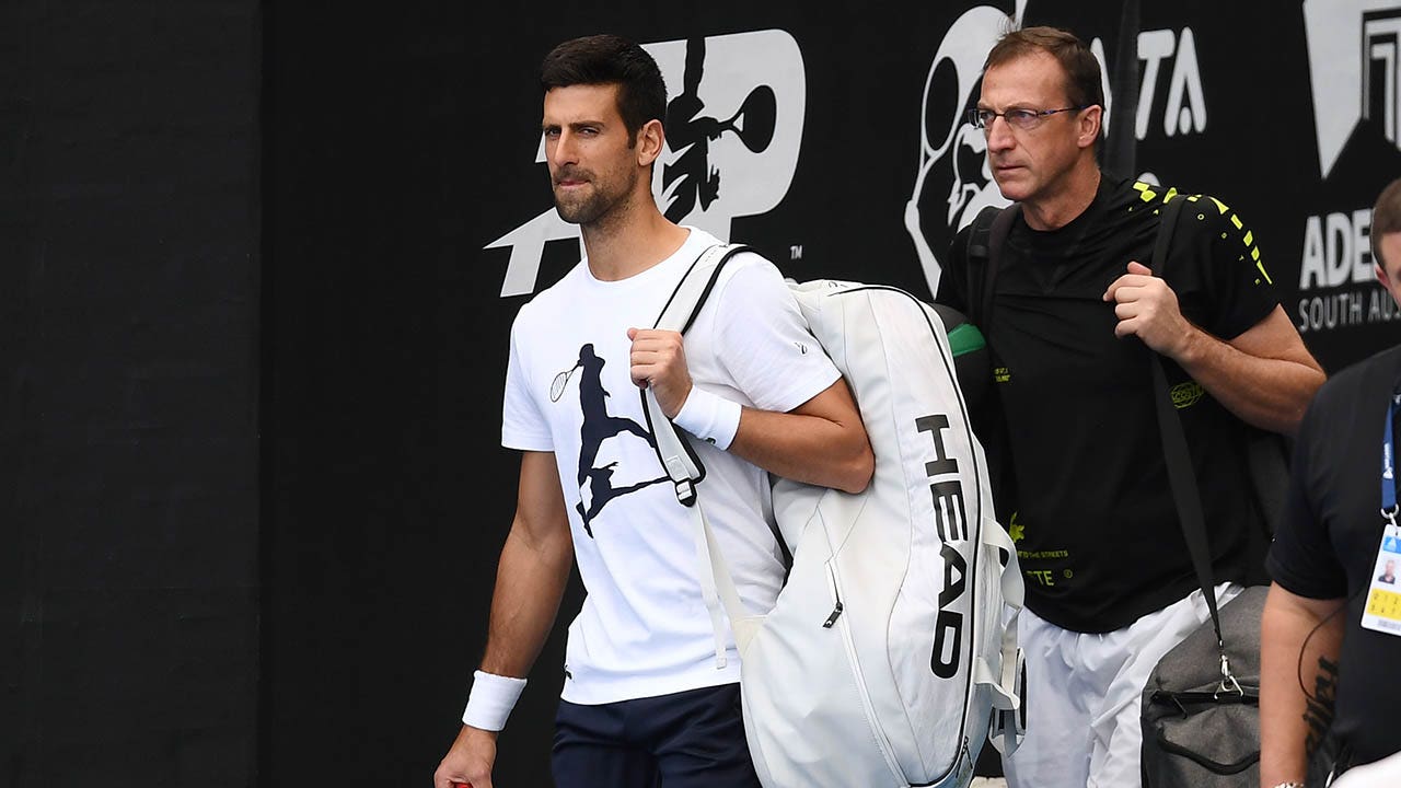 Novak Djokovic arrives at center court during a media opportunity ahead of the 2023 Adelaide International at Memorial Drive on Dec. 28, 2022 in Adelaide, Australia. (Mark Brake/Getty Images)