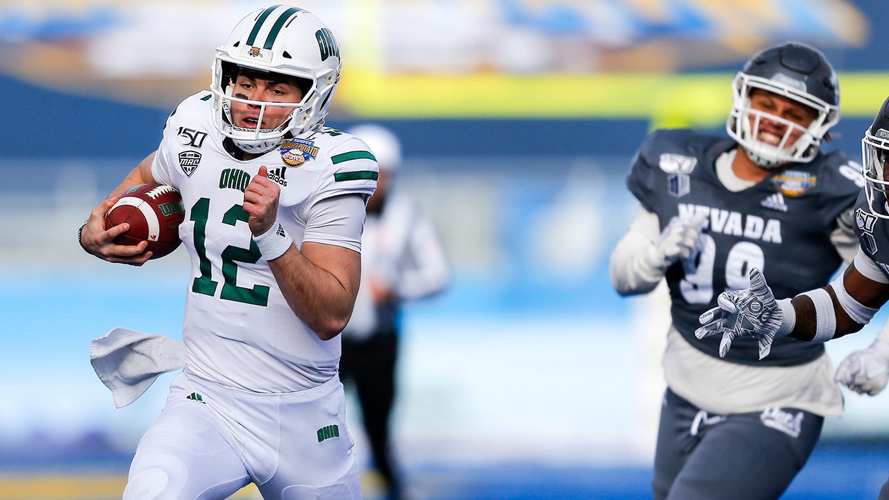 Ohio quarterback Nathan Rourke is projected to be the top quarterback taken in the Canadian Football League draft this spring. He’s pretty good at the American collegiate version, too.