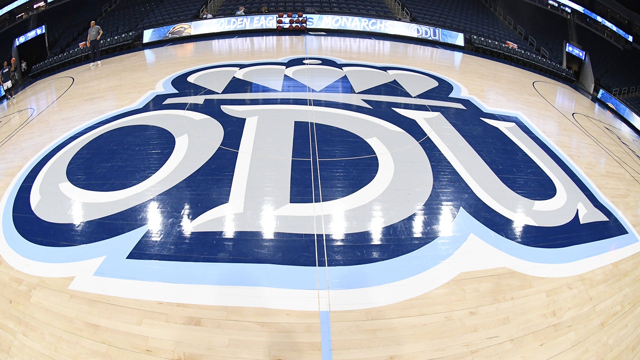 The Old Dominion Monarchs logo at the Ted Constant Convocation Center on March 6, 2019, in Norfolk, Virginia. (Mitchell Layton/Getty Images)