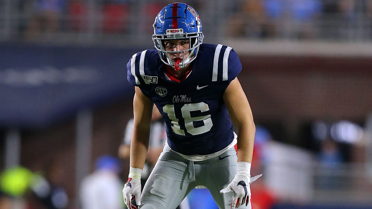 Luke Knox, #16 of the Mississippi Rebels, in action during a game against the Vanderbilt Commodores at Vaught-Hemingway Stadium on Oct. 5, 2019 in Oxford, Mississippi. (Jonathan Bachman/Getty Images)