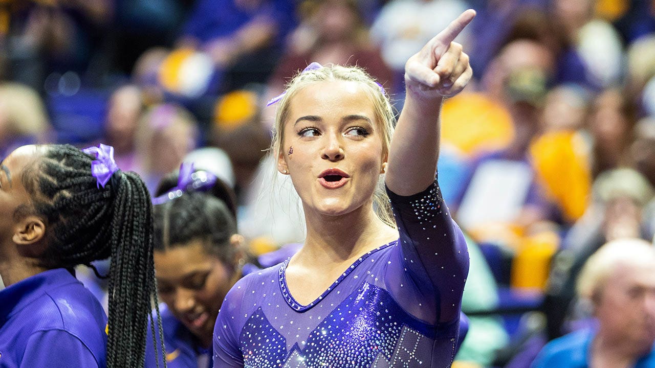 Olivia Dunne prior to a meet against Auburn at Neville Arena on Feb. 10, 2023 in Auburn, Alabama. (Stew Milne/Getty Images)