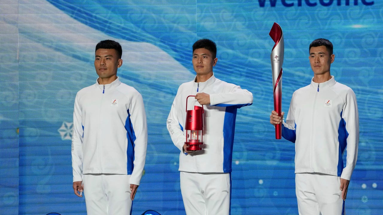 Beijing’s Communist Party Secretary Cai Qi, the top official in the Chinese capital, received the flame at a closely-guarded airport ceremony.