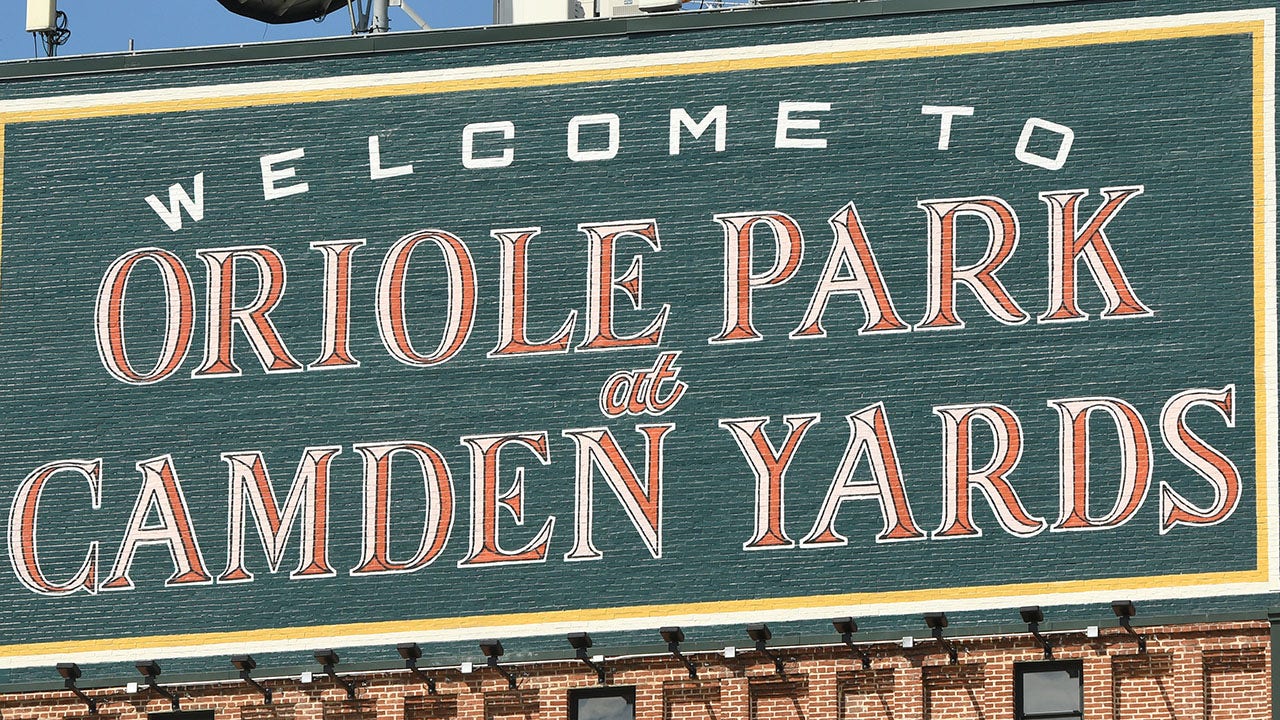 Signage on the warehouse outside Oriole Park at Camden Yards Aug. 7, 2022, in Baltimore. (Mitchell Layton/Getty Images)