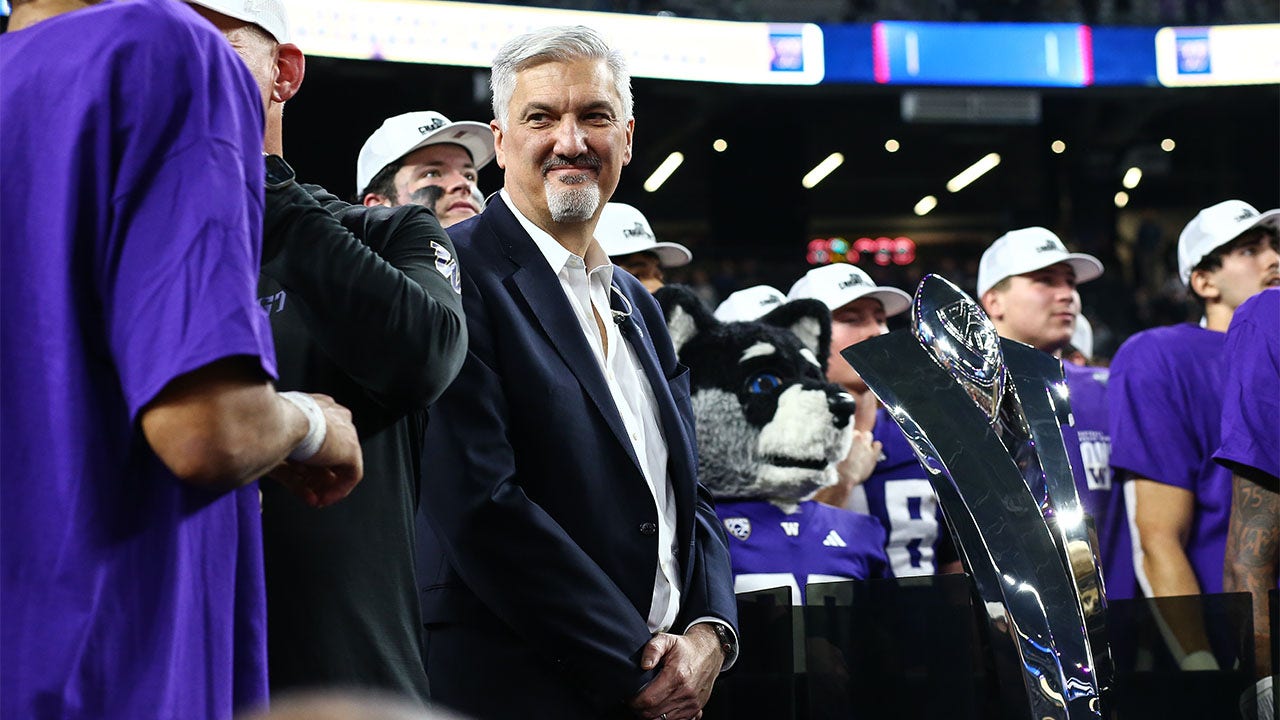 PAC-12 Commissioner George Kliavkoff appears during the trophy ceremony for the PAC-12 Championship Game between the Oregon Ducks and the Washington Huskies at Allegiant Stadium in Las Vegas on Dec. 1, 2023. (Jevone Moore/Icon Sportswire via Getty Images)