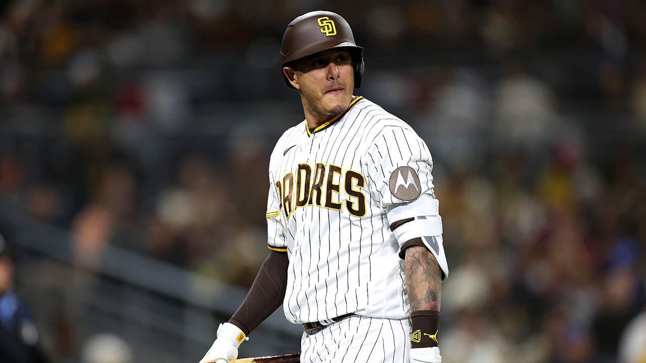 Manny Machado of the San Diego Padres reacts after flying out during the seventh inning of a game against the Arizona Diamondbacks at PETCO Park April 3, 2023, in San Diego. (Sean M. Haffey/Getty Images)
