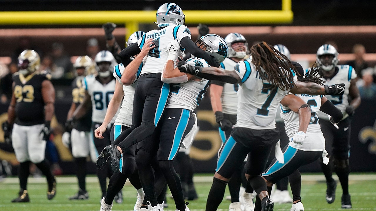 Eddy Pineiro kicked a 42-yard field goal as time expired, and Carolina closed out its season with an opportunistic 10-7 victory over the New Orleans Saints on Sunday.
