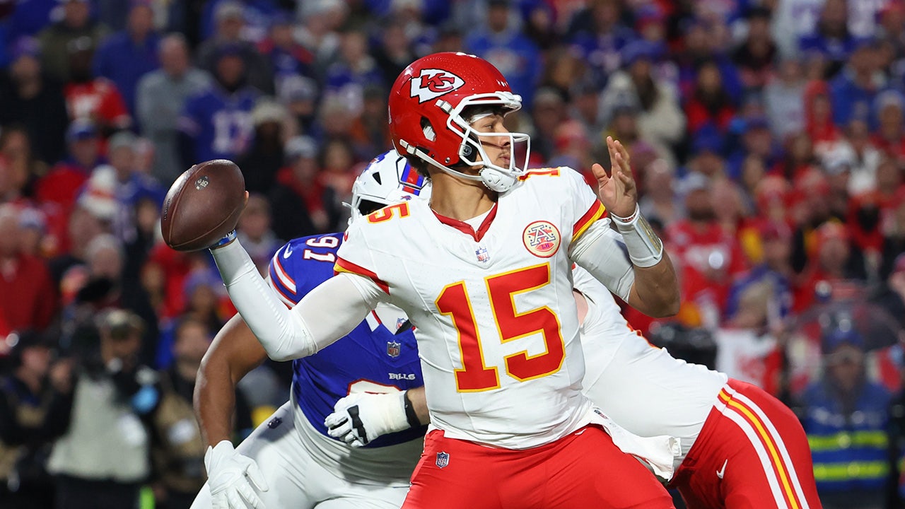 Patrick Mahomes of the Kansas City Chiefs throws a pass against the Buffalo Bills at Highmark Stadium on Nov. 17, 2024, in Orchard Park, New York. (Timothy T Ludwig/Getty Images)