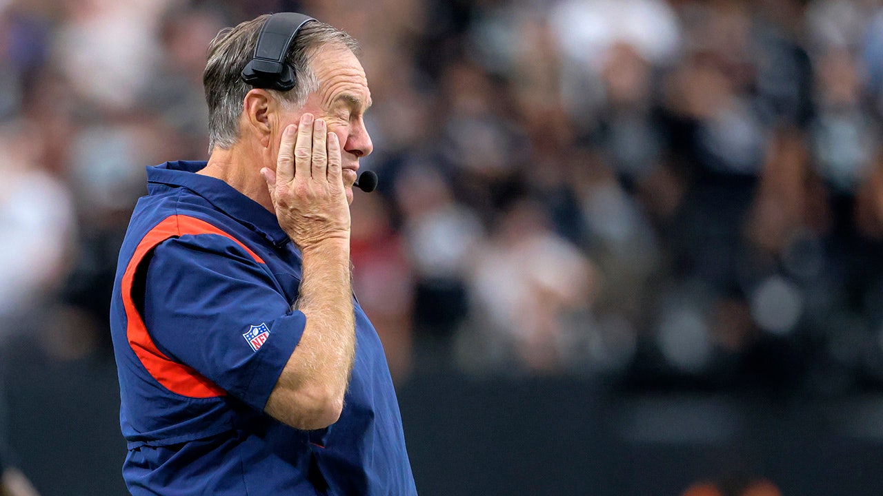 Bill Belichick of the New England Patriots look on during the fourth quarter against the Las Vegas Raiders at Allegiant Stadium on October 15, 2023 in Las Vegas, Nevada. (Ethan Miller/Getty Images)