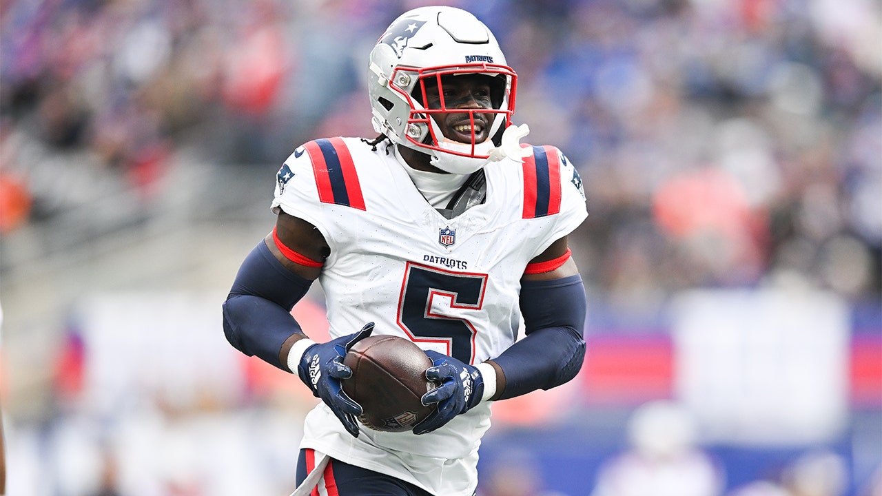 Jabrill Peppers, #5 of the New England Patriots, reacts after recovering a fumble during the first half against the New York Giants at MetLife Stadium on November 26, 2023, in East Rutherford, New Jersey. (Kathryn Riley/Getty Images)