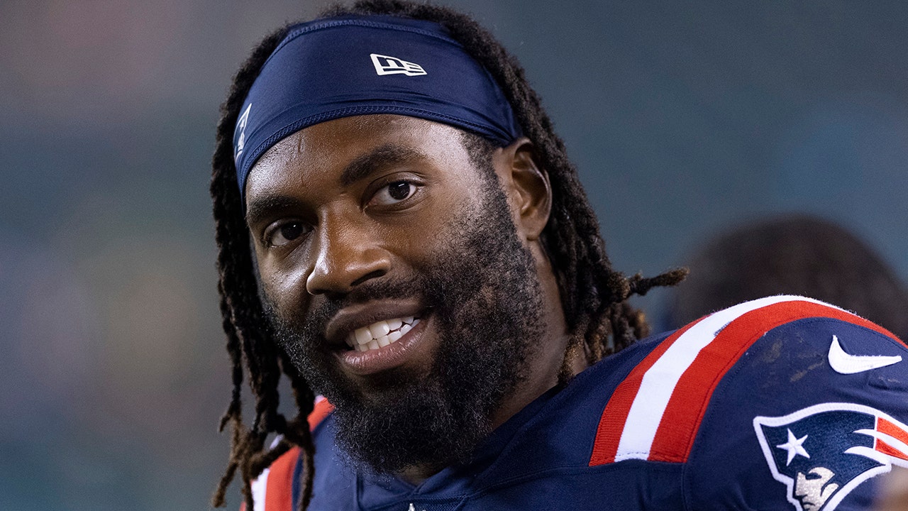 Matt Judon of the New England Patriots looks on against the Philadelphia Eagles in the preseason game at Lincoln Financial Field on Aug. 19, 2021, in Philadelphia, Pennsylvania. The Patriots defeated the Eagles 35-0. (Mitchell Leff/Getty Images)