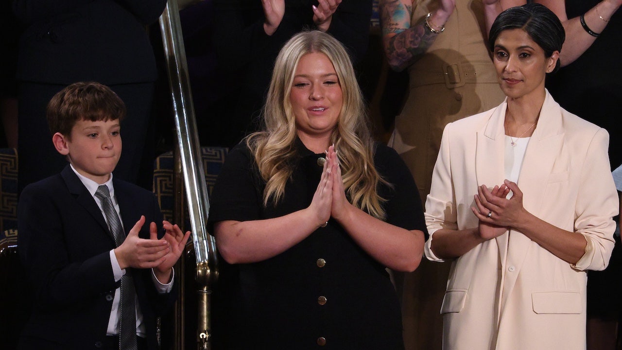 Payton McNabb, left, claps as second lady Usha Vance watches during President Donald Trump's address to Congress at the Capitol in Washington, D.C., on Tuesday. (AP Photo/Alex Brandon)