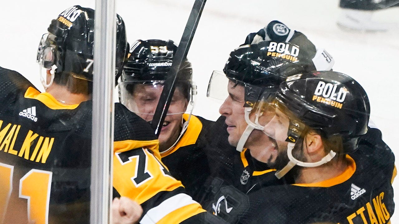 Crosby beat Flyers goalie Carter Hart with a shot from just above the goal line at 16:34 of the first period. Longtime teammate Evgeni Malkin fed Crosby, who gave Pittsburgh a 2-1 lead.