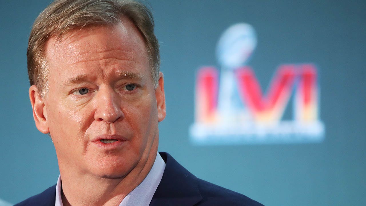 NFL Commissioner Roger Goodell speaks to the media during the Super Bowl LVI head coach and MVP press conference at Los Angeles Convention Center Feb. 14, 2022, in Los Angeles. (Katelyn Mulcahy/Getty Images)