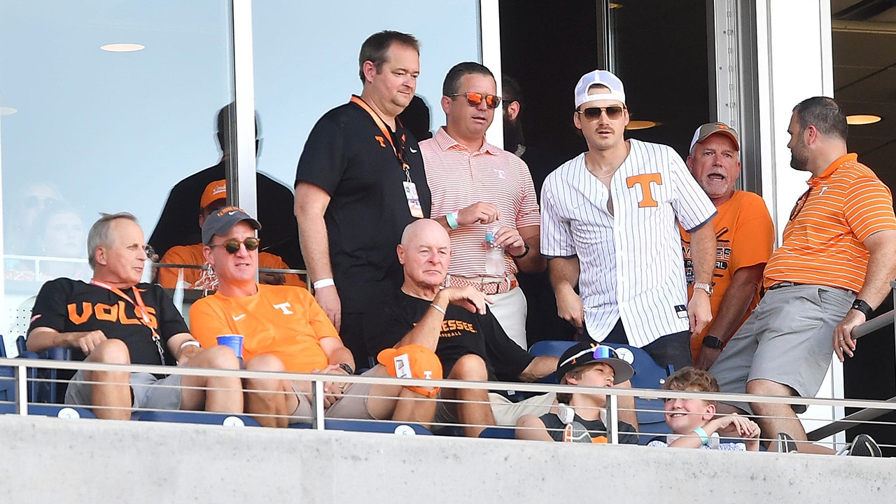The ESPN broadcast then panned to a box that showed Peyton Manning hugging country star Morgan Wallen, who was wearing a pinstripe Tennessee baseball jersey. Rick Barnes, the Volunteers’ men’s basketball coach, and Josh Heupel, the football coach, were also celebrating.