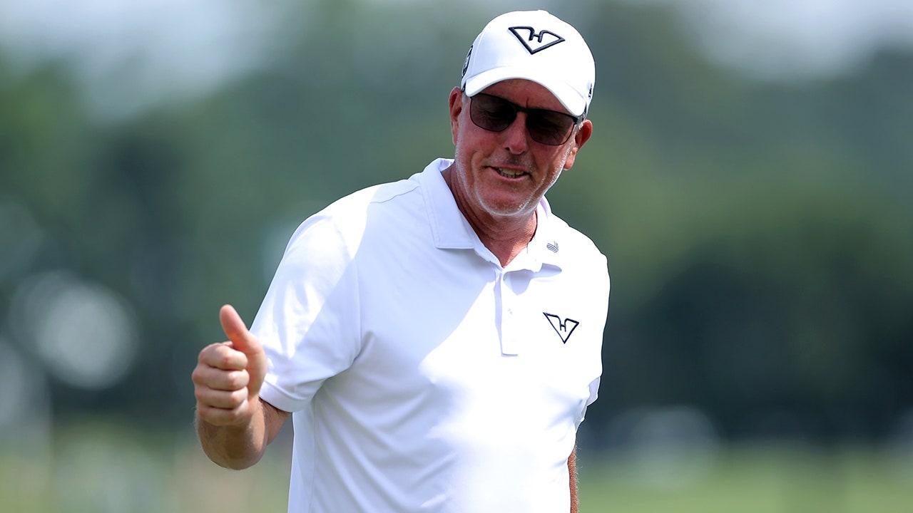 Phil Mickelson acknowledges fans during the final round of the LIV Golf Houston tournament on June 9, 2024. (Erik Williams-USA Today Sports)