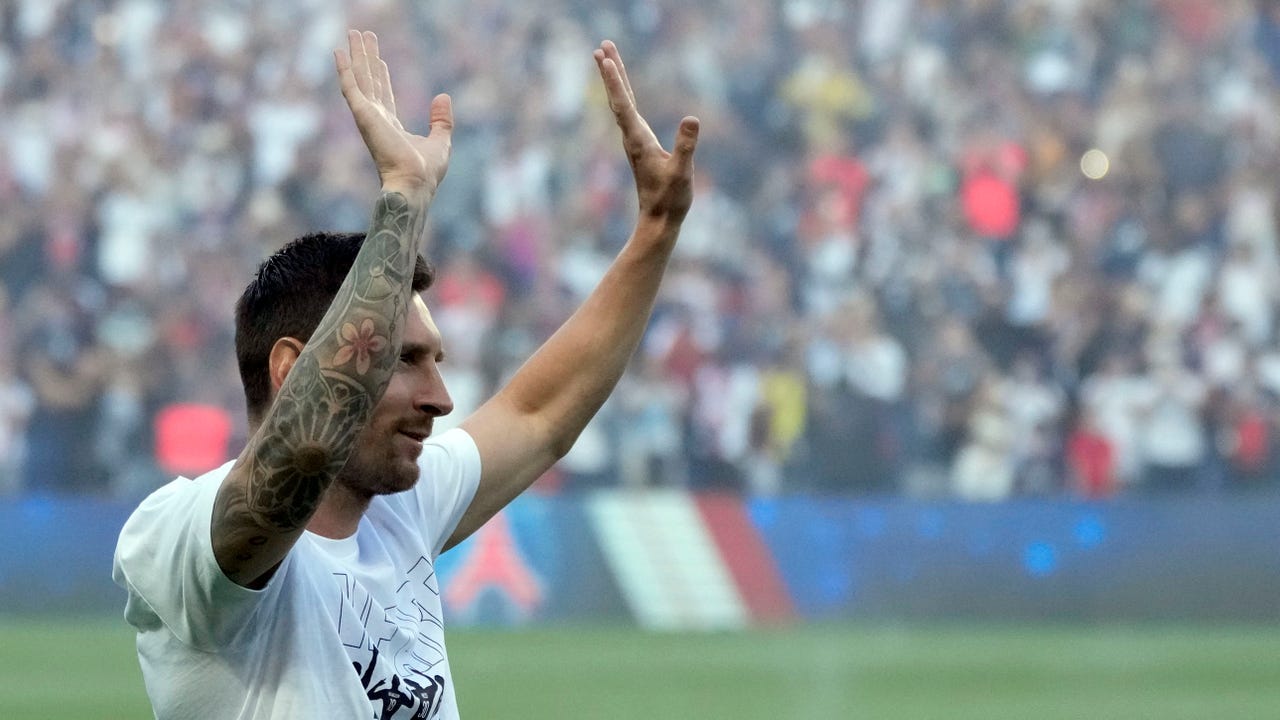 Lionel Messi stood and smiled, looking transfixed as Paris Saint-Germain fans chanted the soccer great's name — "Leo Messi, Leo Messi" — before Saturday's French league game against Strasbourg.