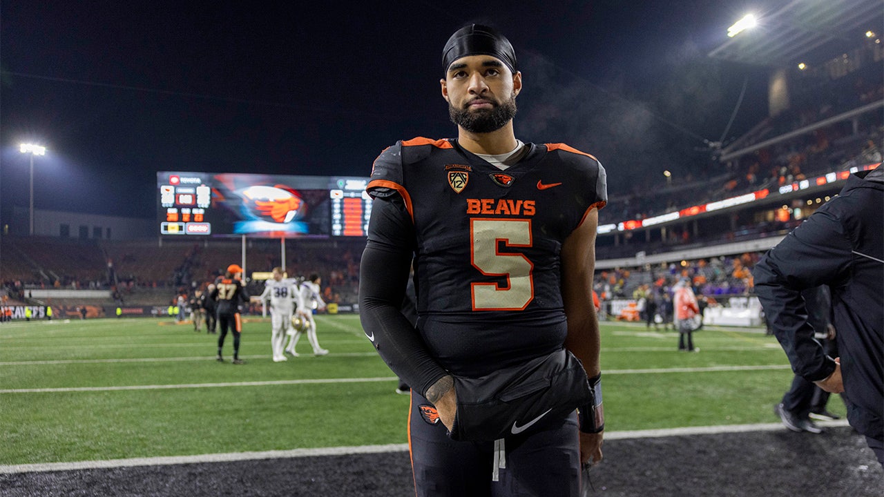 Oregon State quarterback DJ Uiagalelei walks off the field after losing to Washington, Nov. 18, 2023, in Corvallis, Oregon. (Tom Hauck/Getty Images)