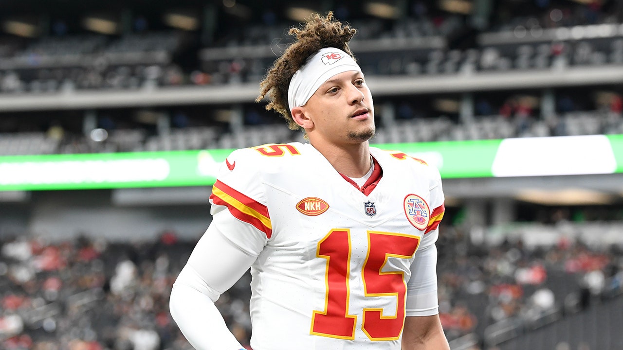 Patrick Mahomes of the Kansas City Chiefs exits the field during warmups against the Las Vegas Raiders at Allegiant Stadium Nov. 26, 2023, in Las Vegas. (Candice Ward/Getty Images)